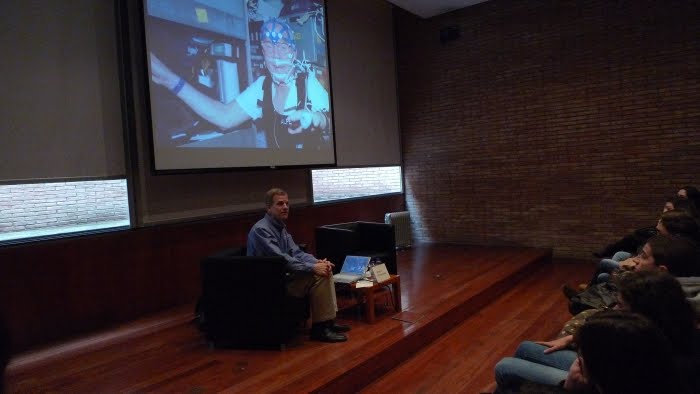 Guiando a assistência através de uma apresentação de fotografias, o astronauta foi dando a conhecer os seus colegas, não apenas americanos mas também de outros países; a maneira como se dorme, come ou viaja no espaço; o modo como se procedem às comunicações; as capacidades do seu fato espacial; e ainda os seus receios, alegrias e conquistas. Começando a palestra com uma imagem aérea tirada por si aos cumes do Everest acabou partilhando a sua última conquista - precisamente a escalada da montanha mais alta do mundo, na cordilheira dos Himalaias.